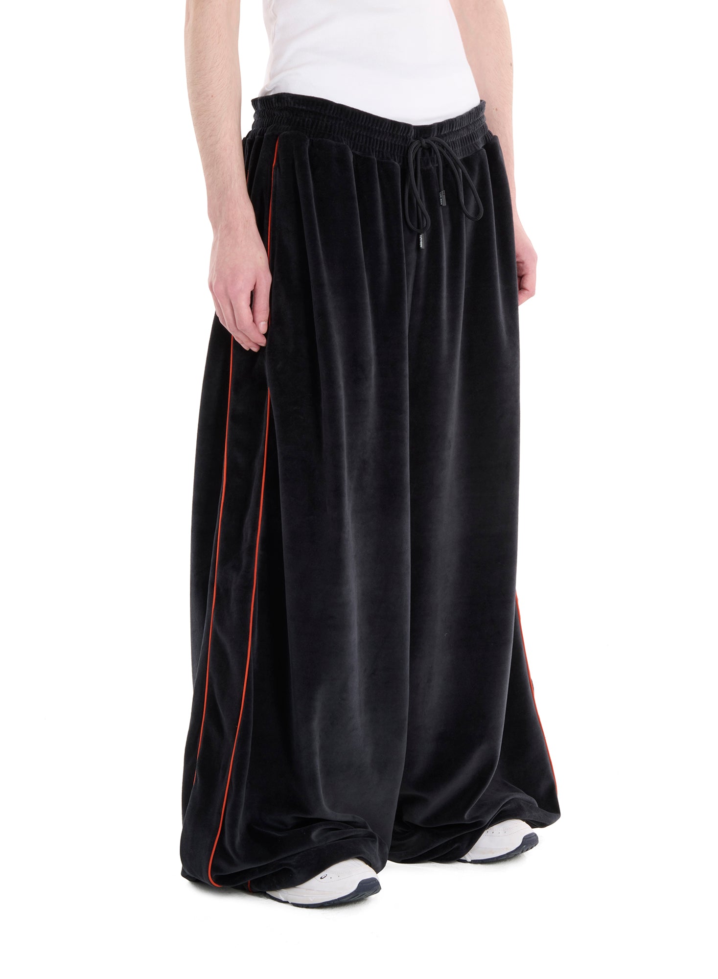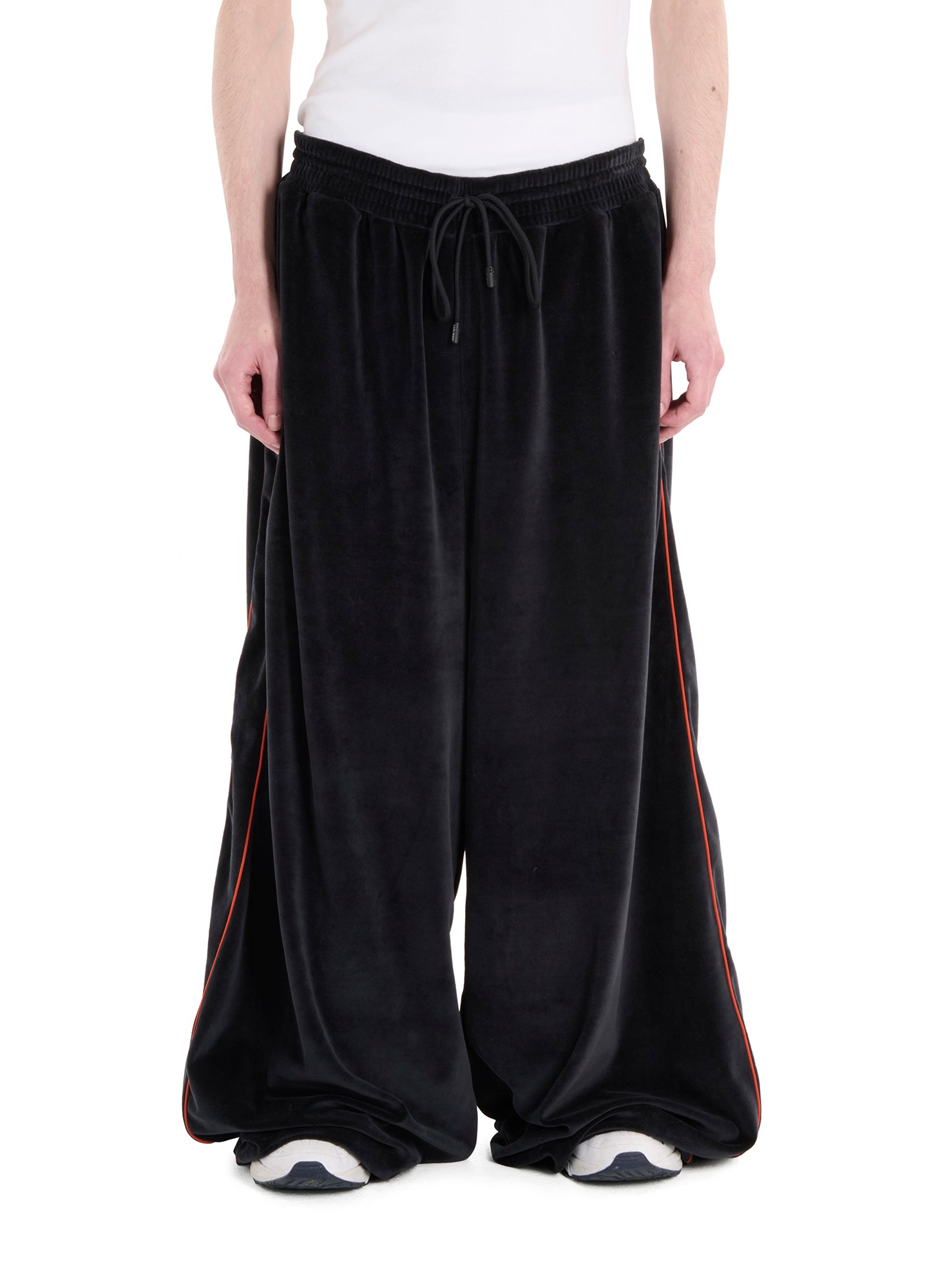 CHANNELLING THAT 90'S KINGPIN THESE TRACK PANTS ARE NOT JUST A LOOK, BUT A STATEMENT. FINISHED WITH STRIKING EMBROIDERY, THESE PANTS PAIR PERFECTLY WITH OUR SUPA-SLEAZE TRACK TOP, A SET THAT CERTAINLY NEVER LACKS ON THE SLEAZE FACTOR. MODEL WEARS A SIZE M.