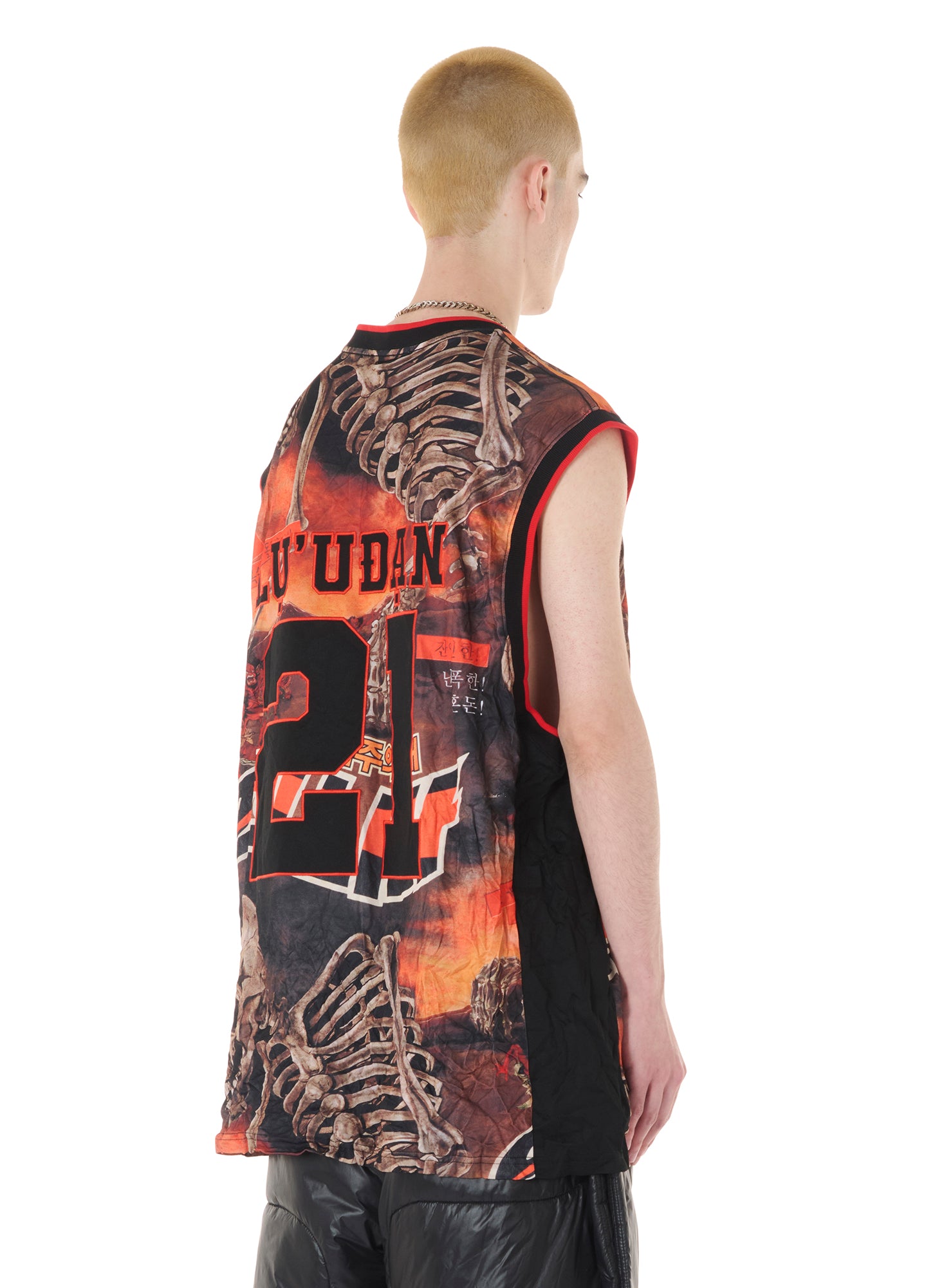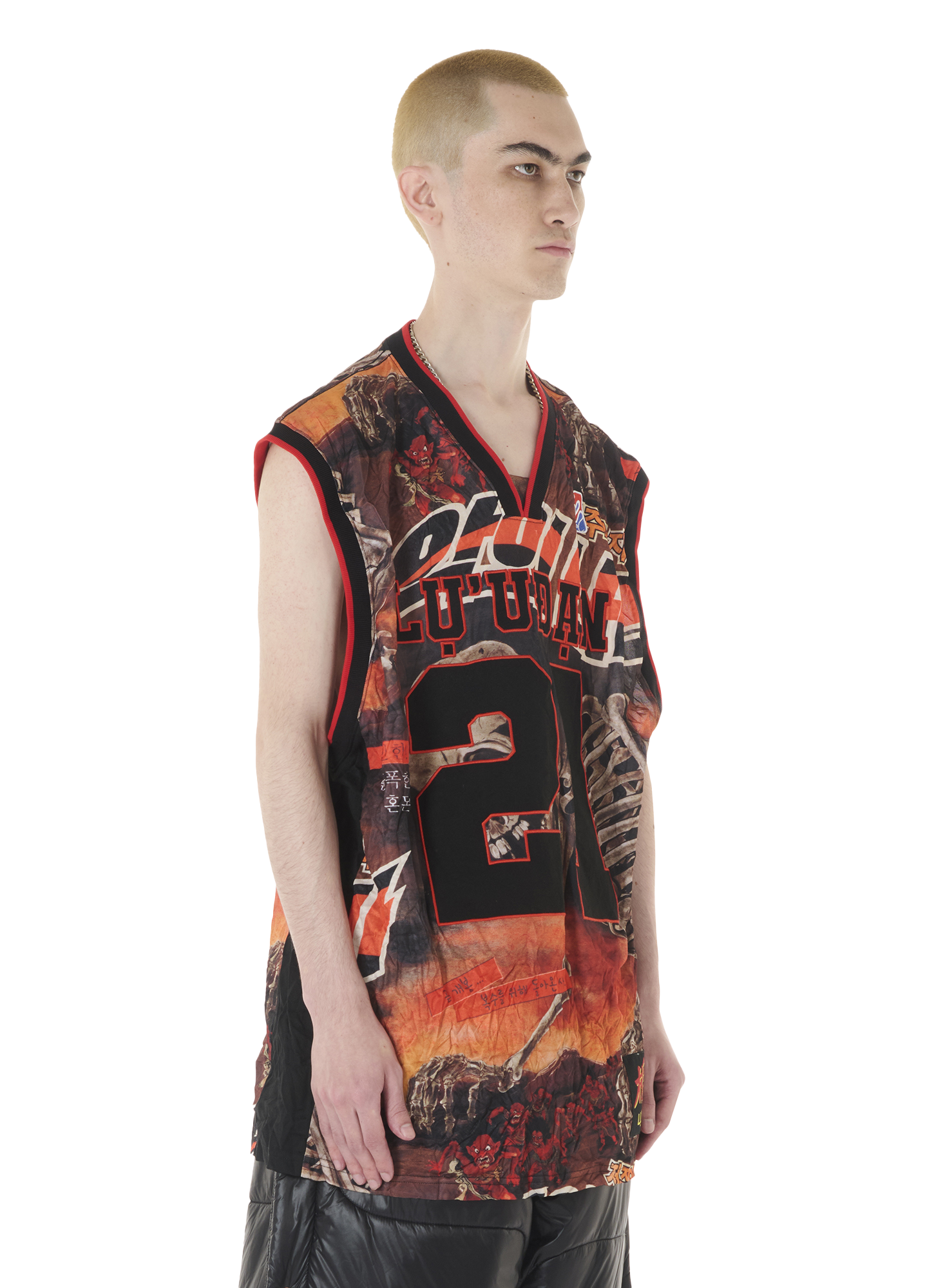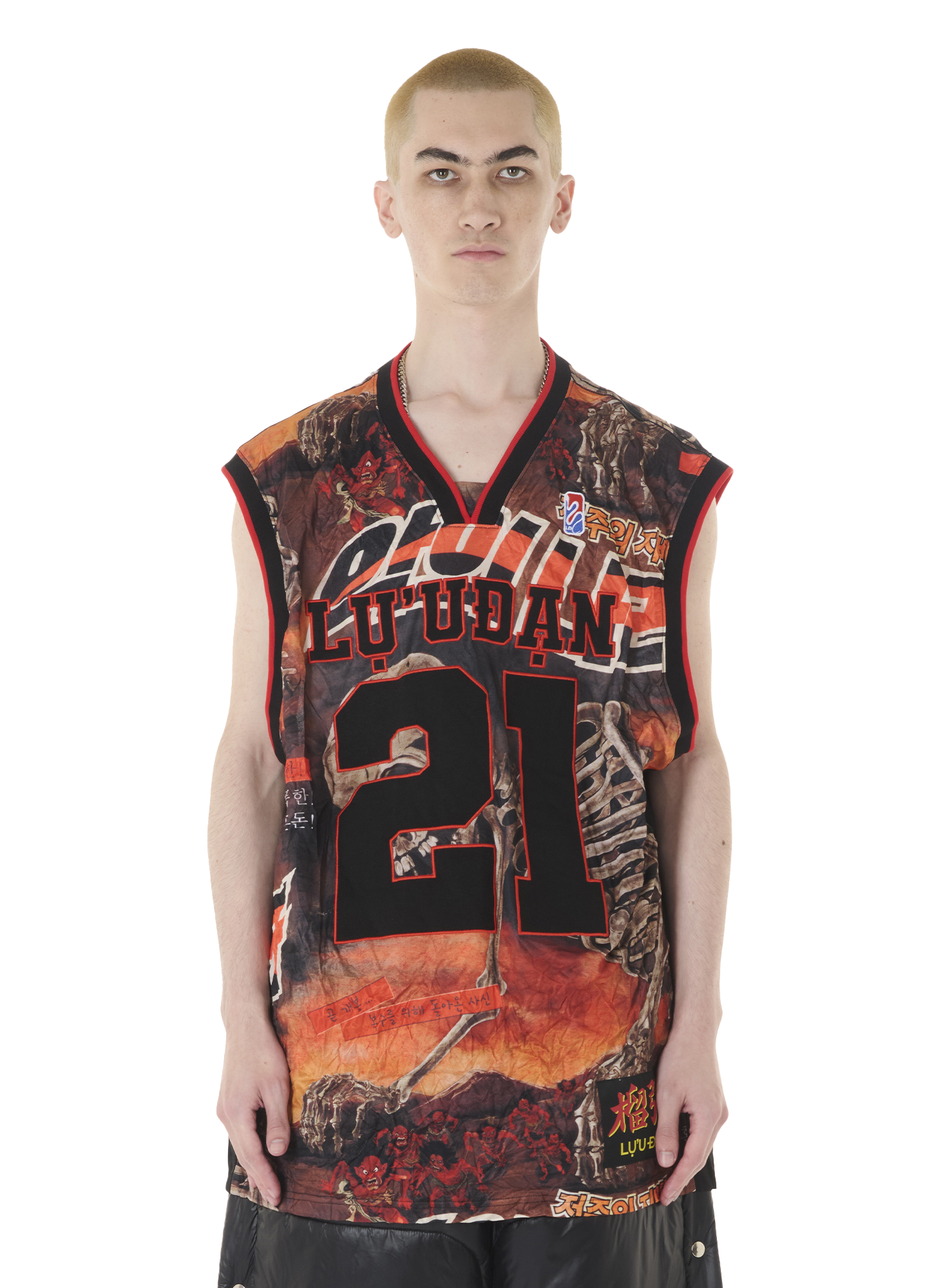 A 90’S STREETWEAR INSPIRED B-BALL JERSEY, DESIGNED TO DOMINATE NOT ONLY THE COURT BUT ALSO THE STREETS. FEATURING OUR FIERCE ‘REAPER MOVIE’ PRINT – IT COMBINES A PASSION FOR ASIAN CINEMA ALONGSIDE OUR LOVE FOR SPORTSWEAR. MODEL WEARS A SIZE M.