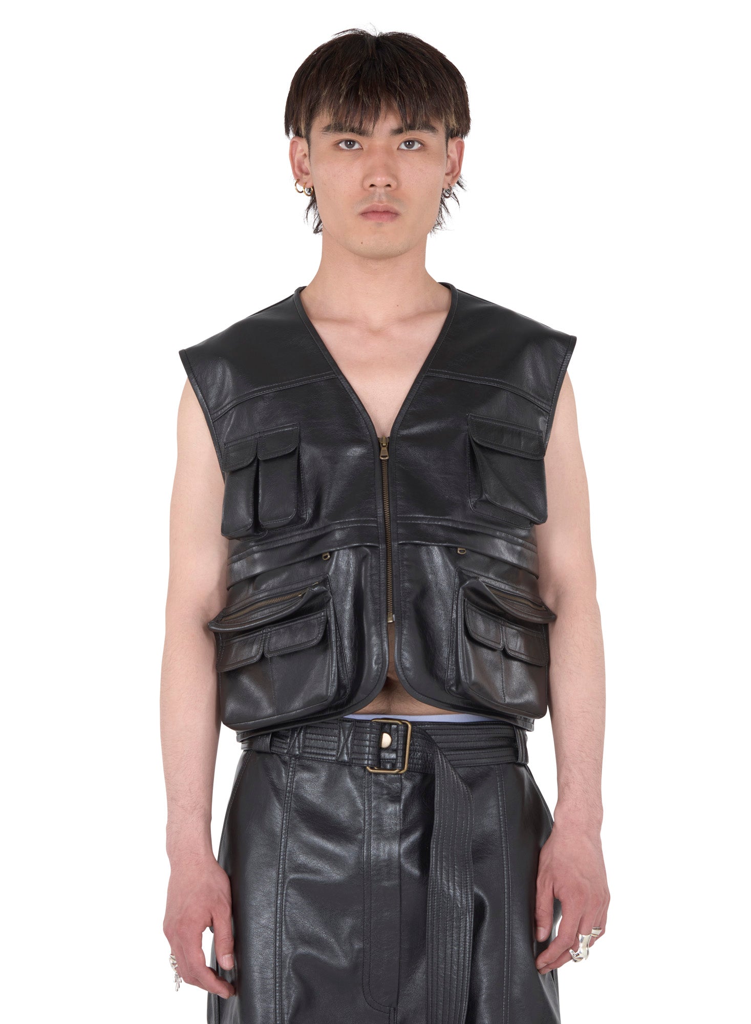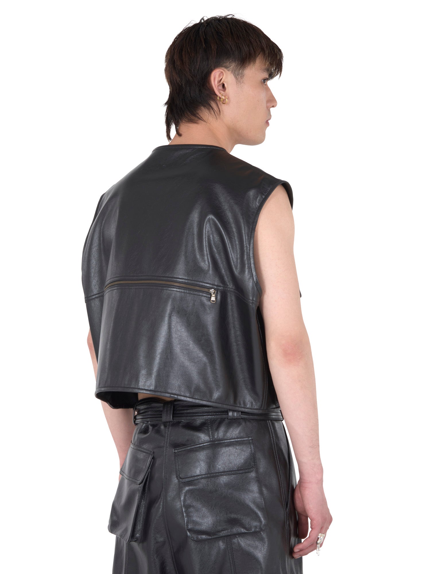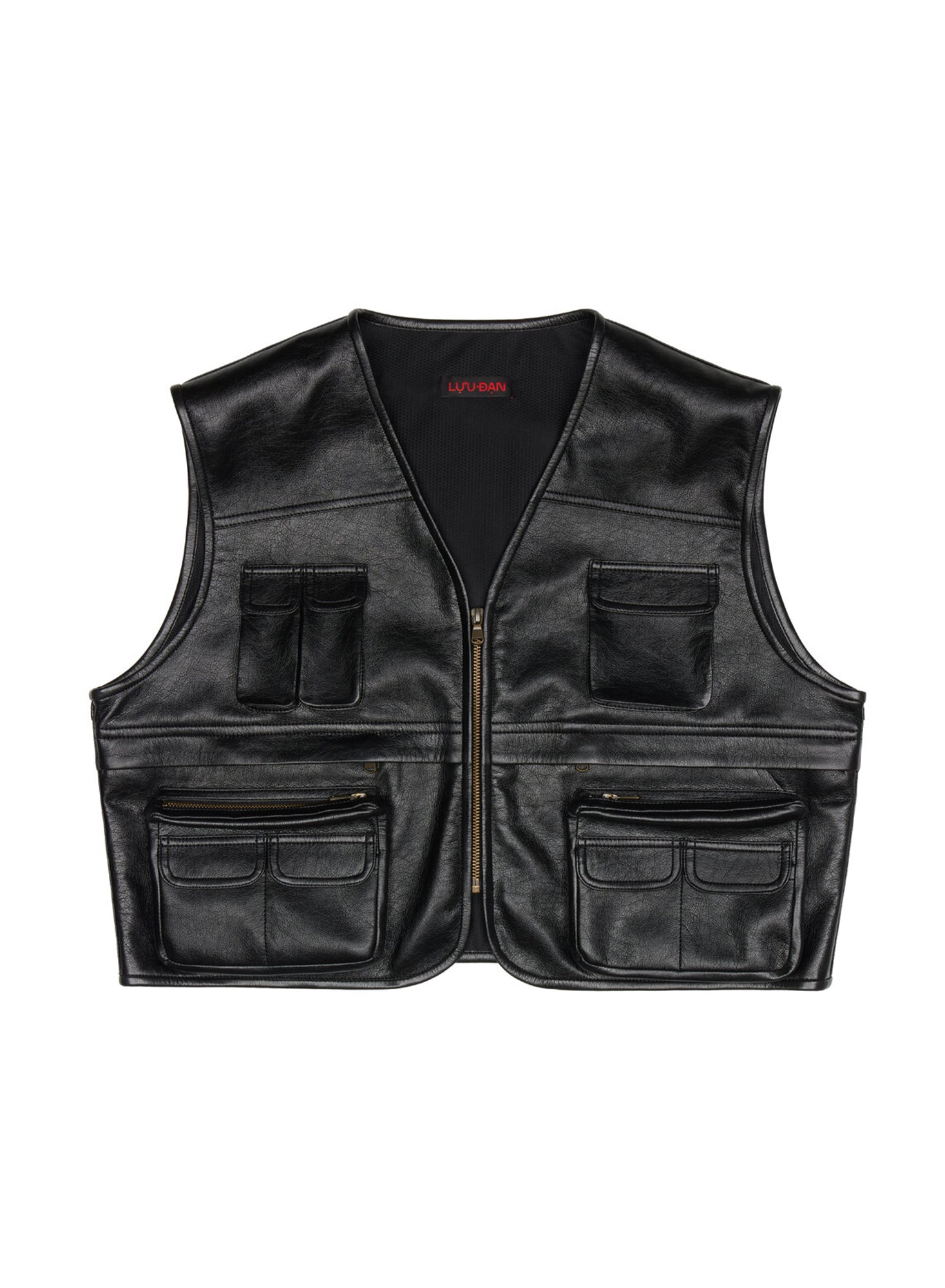 INSPIRED BY THE LIKES OF TUPAC AND HIS IMPECCABLE STYLE, WE GIVE YOU THE CROPPED FAUX LEATHER CARGO VEST. THIS VEST IS ULTIMATELY JUST THE THING YOU NEED TO TAKE A SIMPLE LOOK TO THE NEXT LEVEL. GREAT WITH A BUTTON UP SHIRT OR FOR MORE OF A STATEMENT, WEAR IT ON ITS OWN.