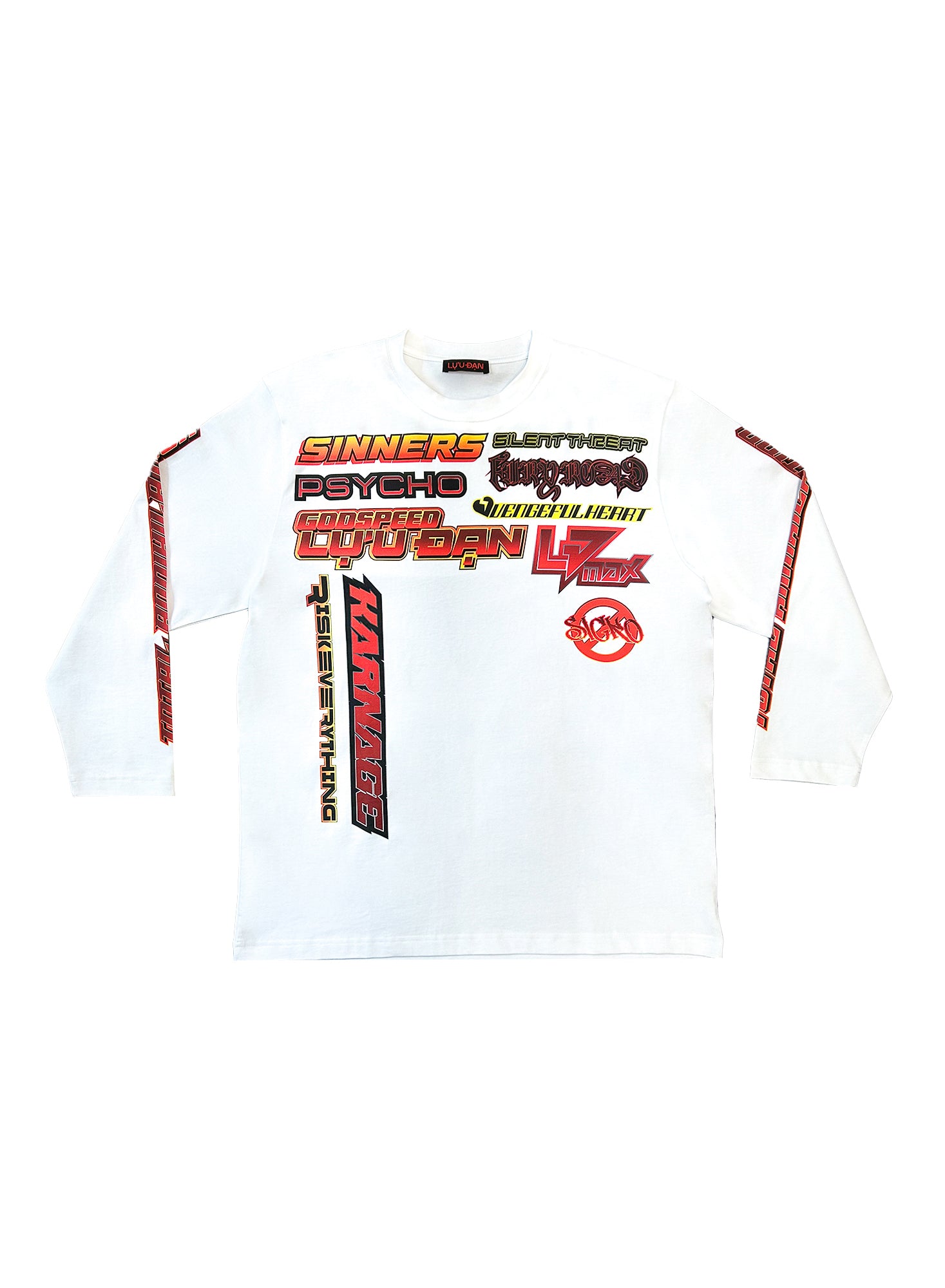 Exclusive to our Atlanta car show, this long-sleeve is born from bosozoku chaos and motocross dreams. Cut from a soft cotton and printed front to back in sponsor-core lunacy, this tee is mildly oversized and moves as freely as it speaks. Wear it like a curse—or a calling card.
