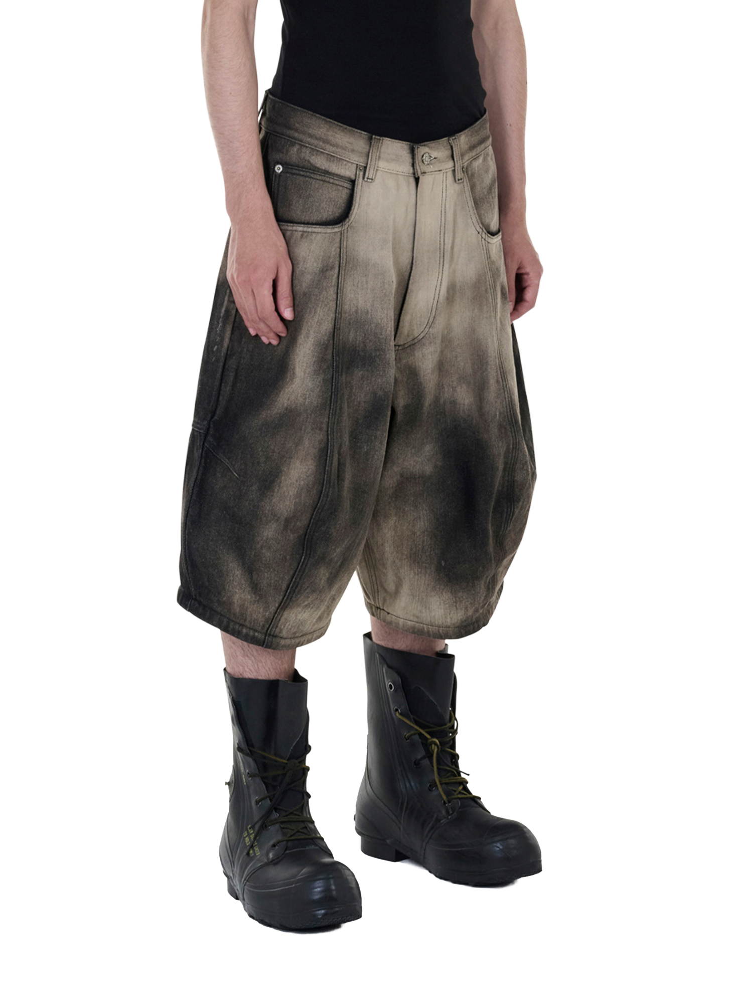 BUILT FOR VOLUME AND SHAPE, THE PUFFA SHORTS DELIVER A SOFT SILHOUETTE THAT FEELS BOTH COMFORTABLE AND ARMOURED. THE DEEP STAIN COLOURWAY ADDS A DARK, HEAT-HELD LOOK — HEAVY, QUIET, AND LOADED.