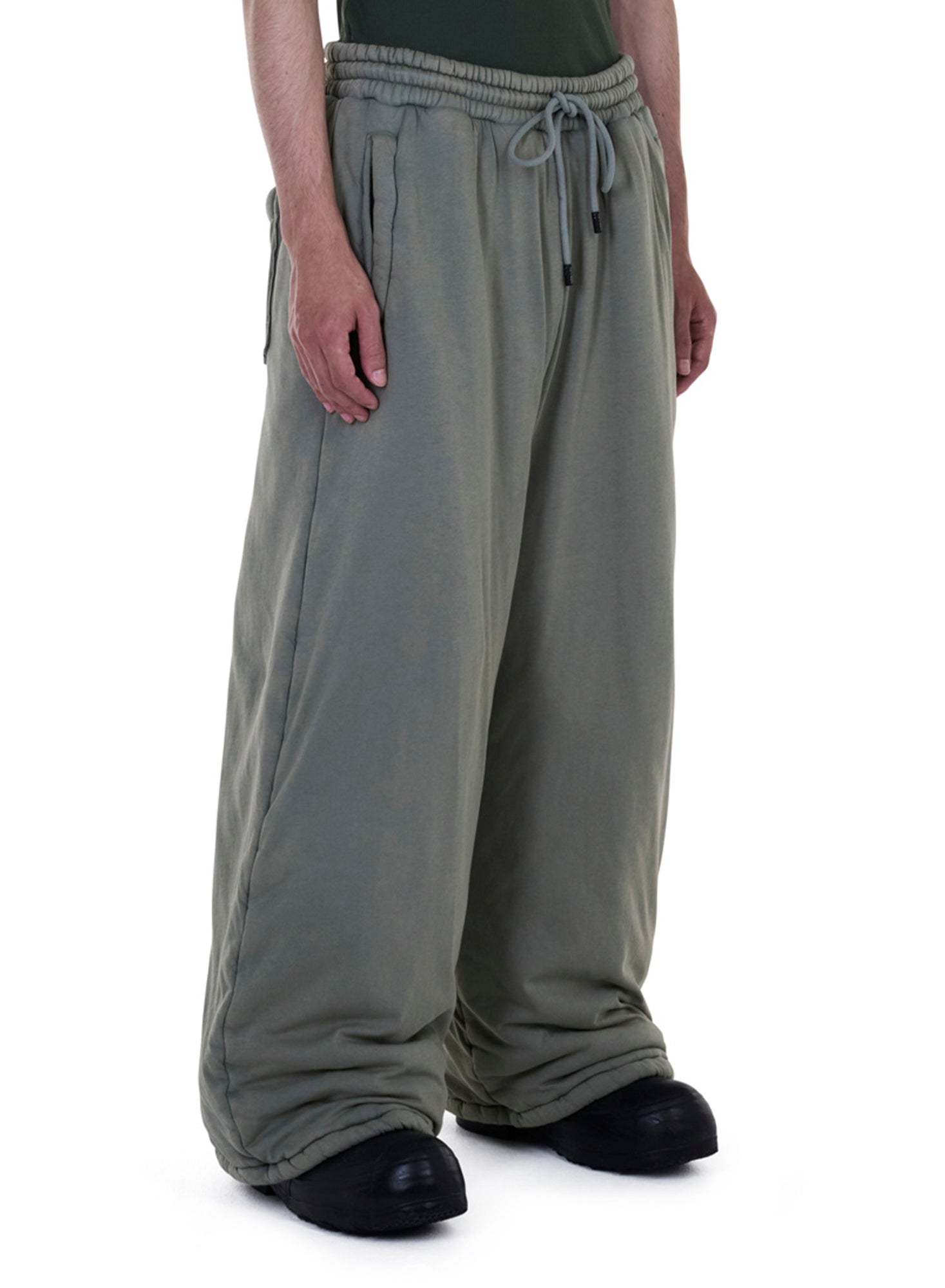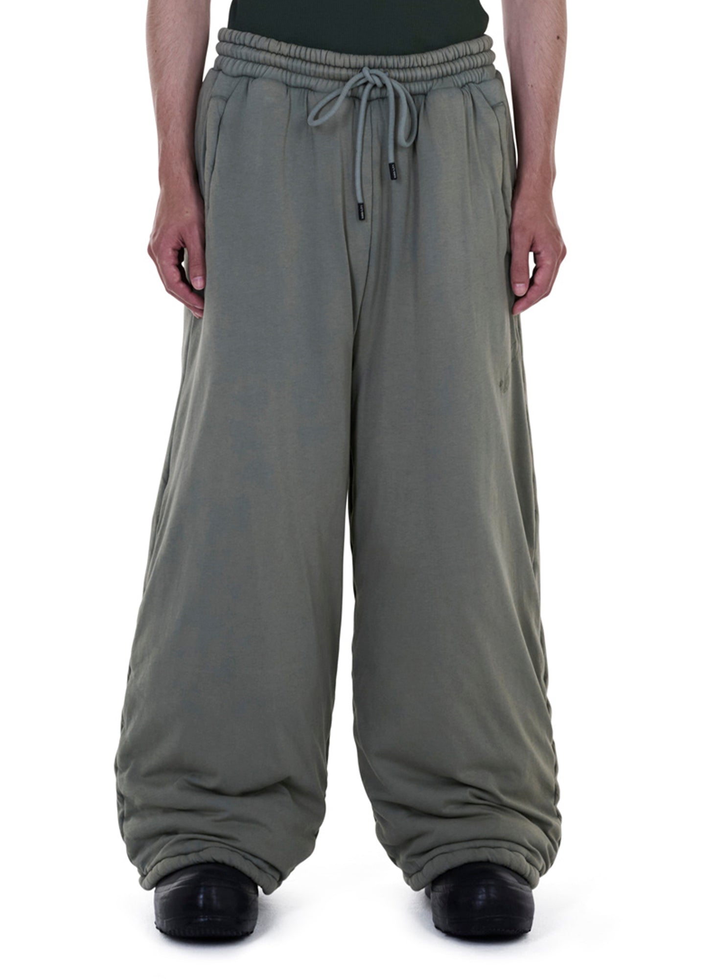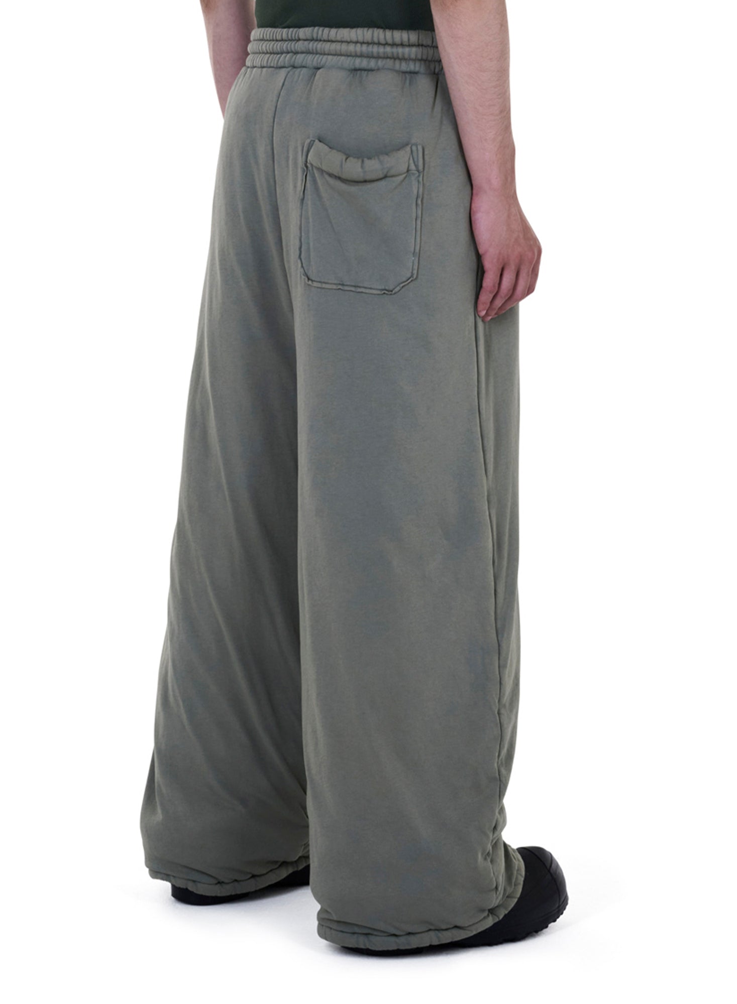 A PADDED INTERPRETATION OF THE CULT BONTAN SILHOUETTE, THESE TROUSERS ARE BUILT WITH LIGHT WADDING TO HOLD STRUCTURE AND CONTROLLED VOLUME. THE VETIVER COLOURWAY BRINGS A MUTED, TACTICAL EDGE — GROUNDED, SMOKEY, AND QUIETLY LOADED — PUSHING THE PIECE INTO UTILITY TERRITORY WHILE KEEPING ITS OUTLAW PROPORTIONS INTACT. DESIGNED FOR STEALTH MOVEMENT AND LOW-VISIBILITY PRESENCE.
